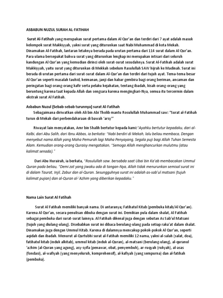 Asbabun Nuzul Surah Al Fatihah Pdf